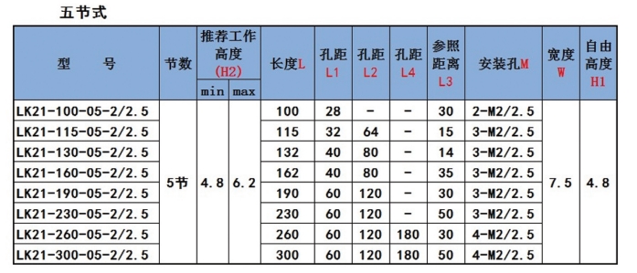 (1)LX21系列鎖緊條鎖緊高度不低于4.8mm;