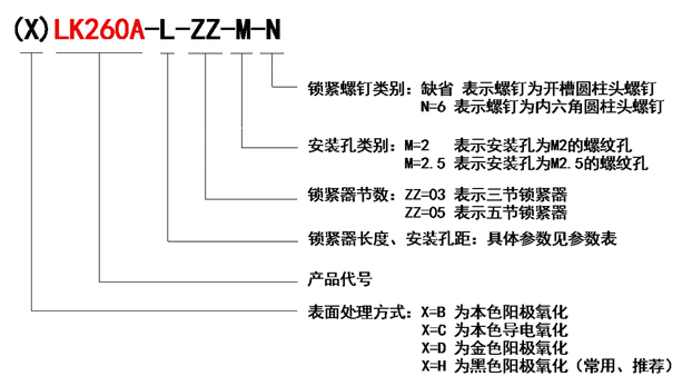 “LK260A”表示260A系列鎖緊條產(chǎn)品